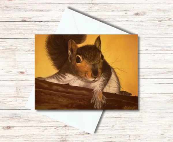 Printed on high-quality premium card with gloss finish, our Squirrel Greeting Card offers a luxurious feel and durability. Safely packed in cello bag. Comes with a white envelope and is packaged in a hard backed envelope.